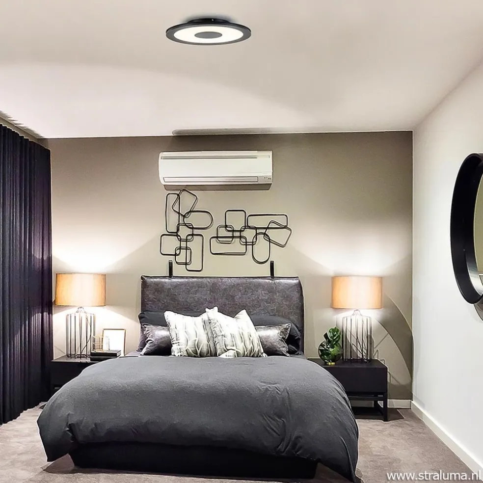 Plafondlamp zwart rond 38cm 3-st.dim.