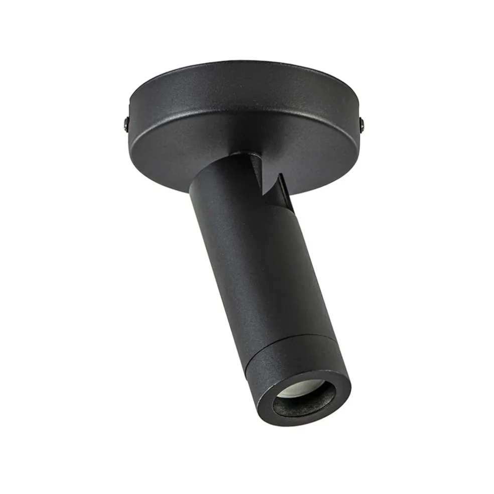 Een mooie plafondspot die prima geschikt is voor diverse woonstijlen. De enkele opbouwspot is gemaakt van mat zwart metaal. De cilindervormige spot is verstelbaar door deze te draaien en/of te kantelen. Ideaal om net even die donkere hoek of dat schilderij uit te lichten. Ook voor het toilet is deze spot een ideale toevoeging. Het leuke aan deze spot is dat hij wordt geleverd met zowel een mat zwarte als een goudkleurige fitting ring. U kunt er zelfs voor kiezen de fitting ring weg te laten en de spot af te maken met een grotere lichtbron. Zo kiest u zelf welke look u wilt.