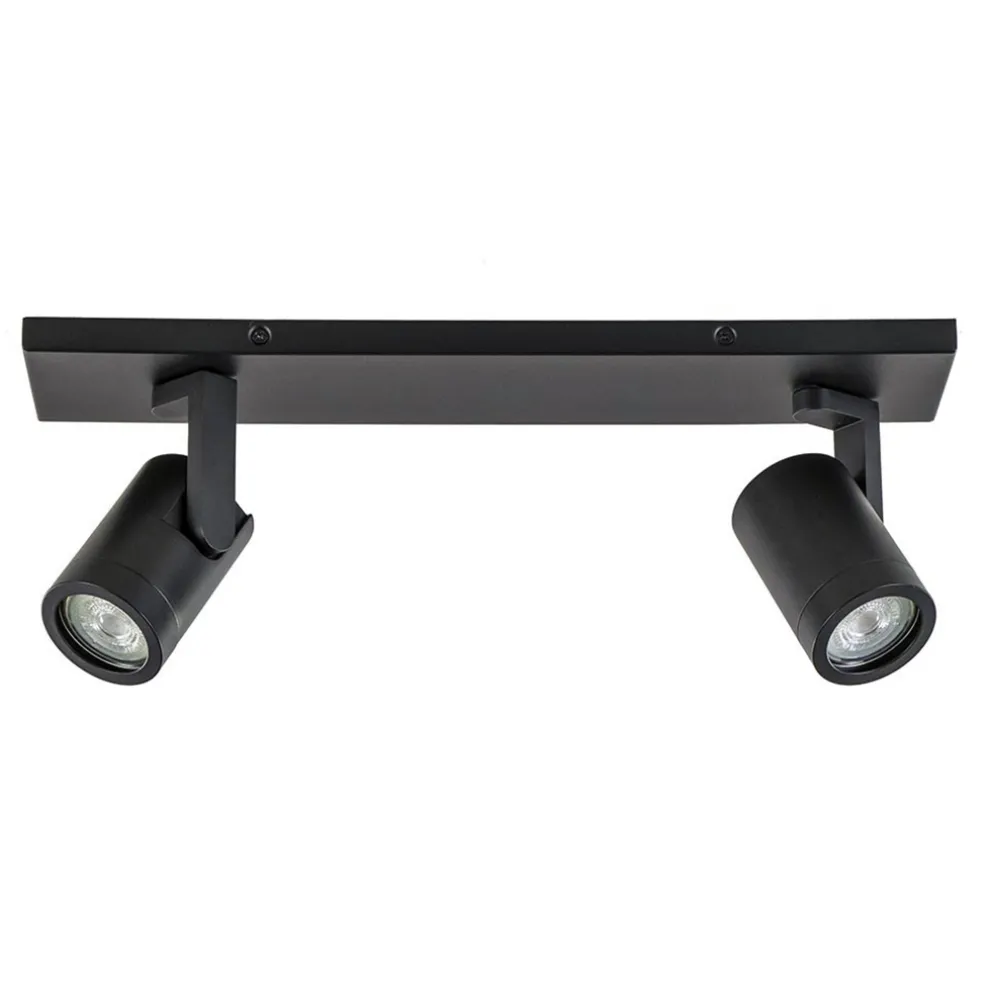 Een fijne plafondspot voor in een hal of slaapkamer. Deze moderne opbouwspot is volledig afgewerkt in mat zwart wat de plafondlamp een moderne en strakke look geeft. De spots zijn zowel te kantelen als te draaien zodat u ze altijd naar de gewenste richting kunt laten verlichten. De ronde spotjes zijn voorzien van een afneembare ring die u er gemakkelijk afdraait zodat de lichtbron kan worden geplaatst en zitten bevestigd op een L-vormig pootje. De metalen plafondspot heeft een smalle en platte bevestiging die de strakke moderne look extra benadrukt. De 2-lichts nikkel opbouwspot wordt geleverd zonder lichtbronnen (2x GU10).