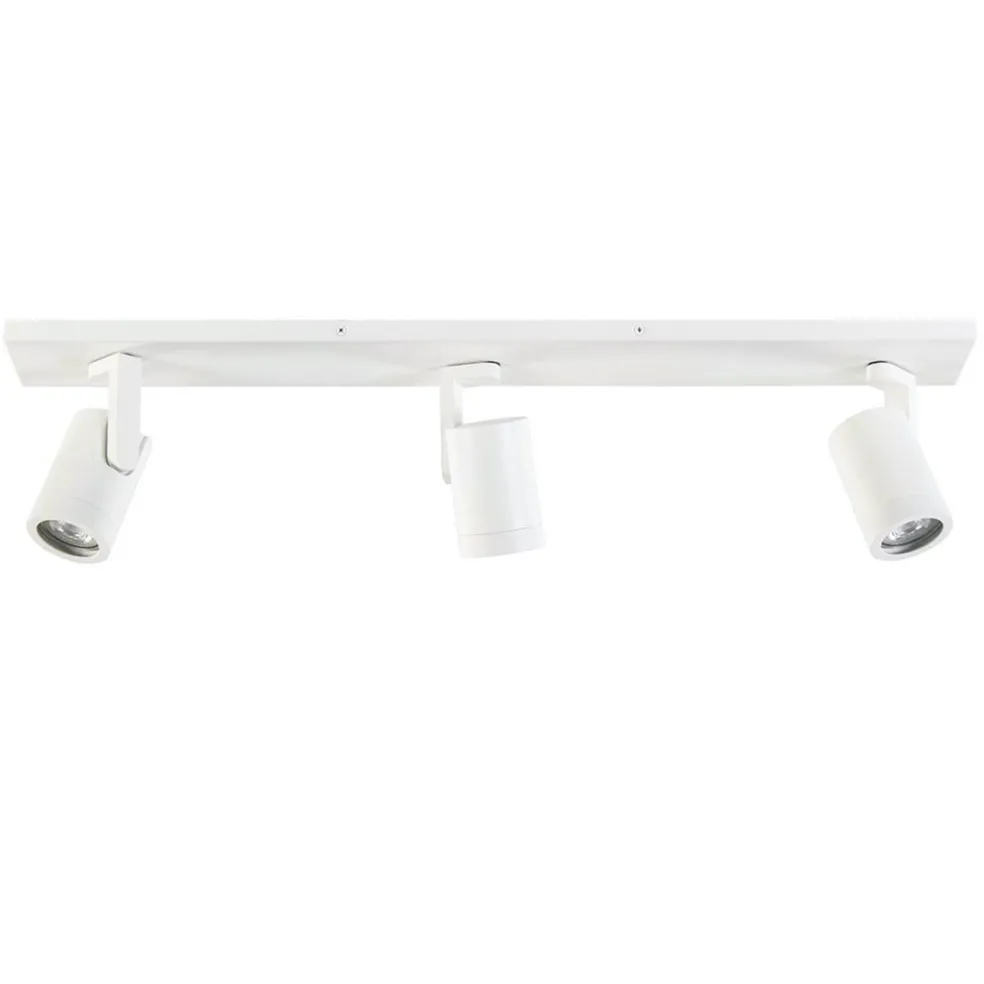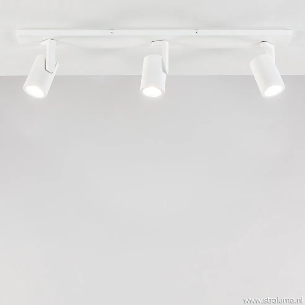 Deze moderne opbouwspot heeft een strak en minimalistisch design. De drie spots zijn gemakkelijk te verstellen door ze te draaien en te kantelen. Ideaal voor in een hal of smalle kamer. De spots zijn voorzien van een ring die eraf gedraaid kan worden zodat u de lichtbron kunt plaatsen. De metalen spots zijn bevestigd op een L-vormig pootje die weer is bevestigd op de metalen plafondbalk. De opbouwspot is volledig afgewerkt in mat wit wat een luxe design look geeft. De 3-lichts plafondspot wordt geleverd zonder lichtbronnen (3x GU10).