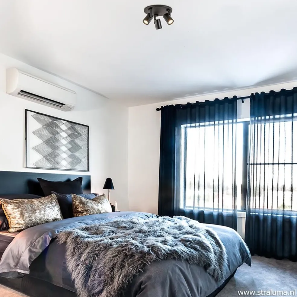 Een ideale plafondspot die prima geschikt is voor diverse ruimtes. Deze metalen opbouwspot heeft een strakke afwerking en is volledig voorzien van een mat zwarte finish. De drie spots zijn te draaien en te kantelen zodat ze altijd naar de gewenste richting kunnen verlichten. De spotjes zijn gemakkelijk te openen door de ring eraf te draaien zodat u de lichtbron kunt plaatsen. De moderne plafondspot is dimbaar via een externe dimmer en wordt zonder lichtbron (3x GU10) geleverd.