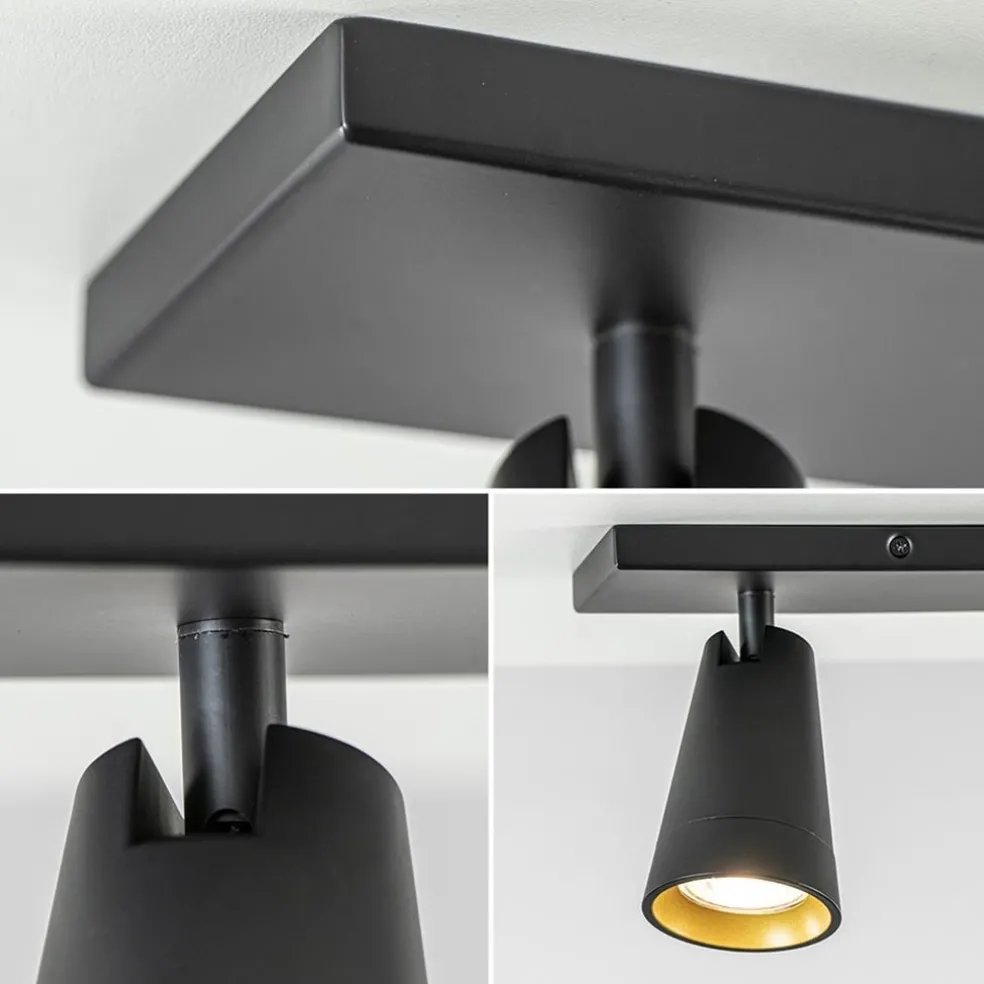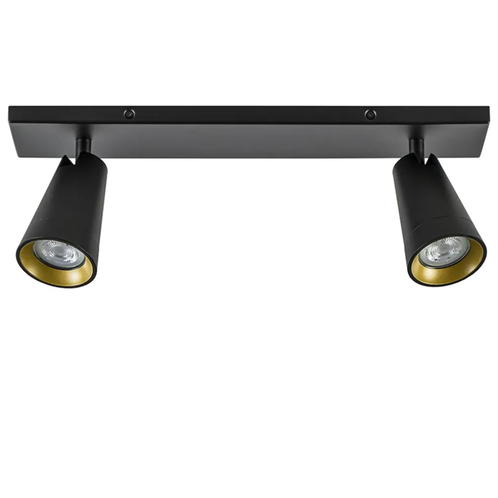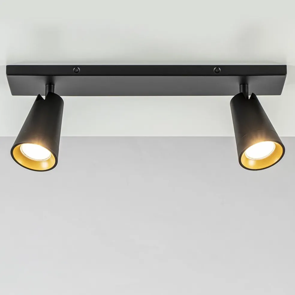Perfect voor uw hal, overloop of slaapkamer. Deze 2-lichts opbouwspot is verstelbaar door de spots te draaien of kantelen zodat u deze altijd naar de juiste richting kunt plaatsen. De opbouwspot is volledig van metaal en voorzien van een mat zwarte finish. Leuk accent is de gouden binnenzijde van de ring. De combinatie van het zwart en goud maakt de opbouwspot ook prima geschikt voor diverse woonstijlen. U kunt de GU10 lichtbronnen gemakkelijk plaatsen door de bovenzijde van de spots los te draaien. De lichtbronnen zijn niet inbegrepen. De 2-lichts plafondlamp is dimbaar met de juiste dimmer (exclusief).