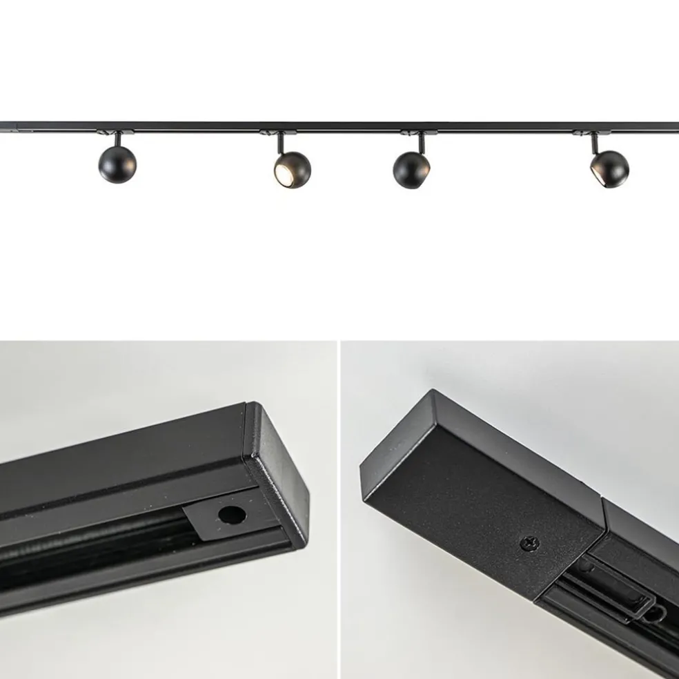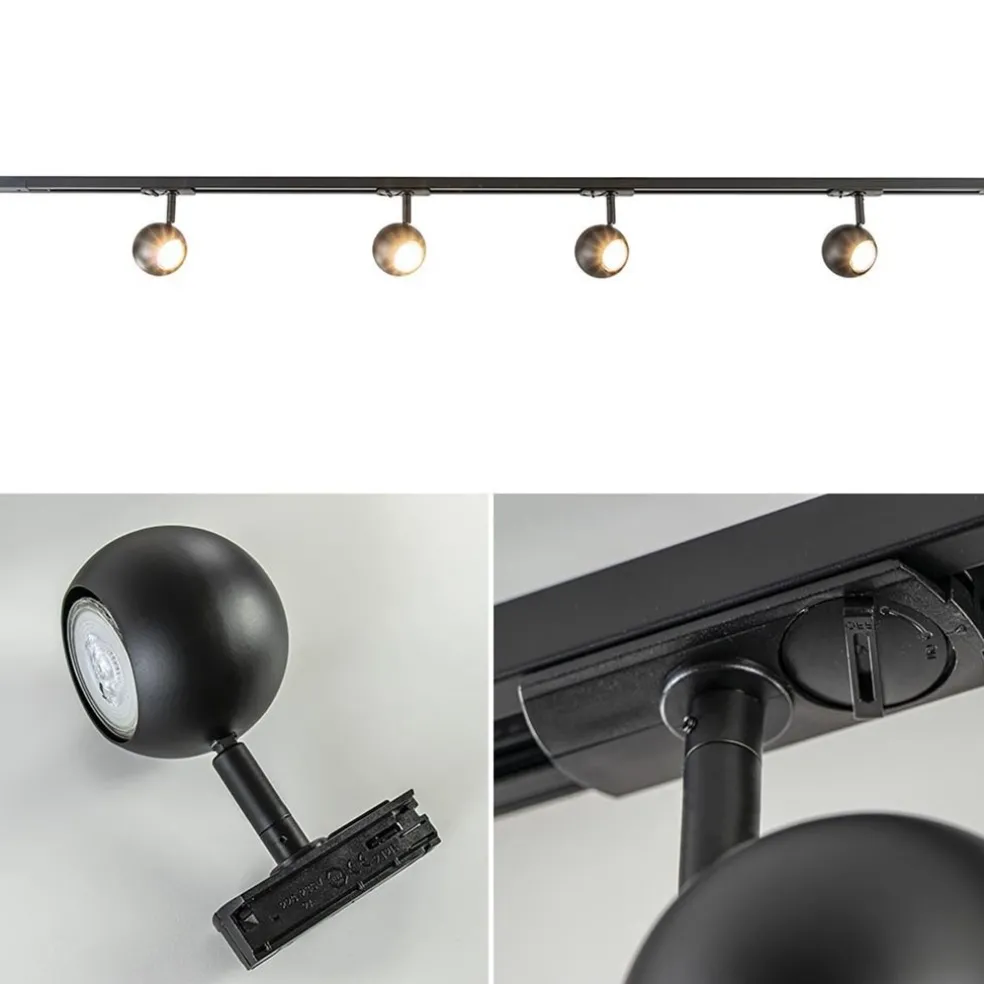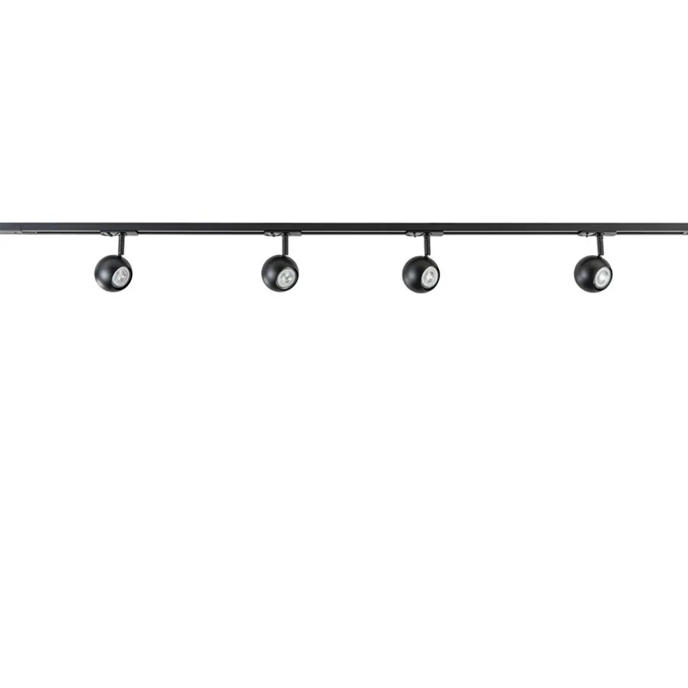 Railsysteem 1-fase zwart inclusief 4 ronde spots