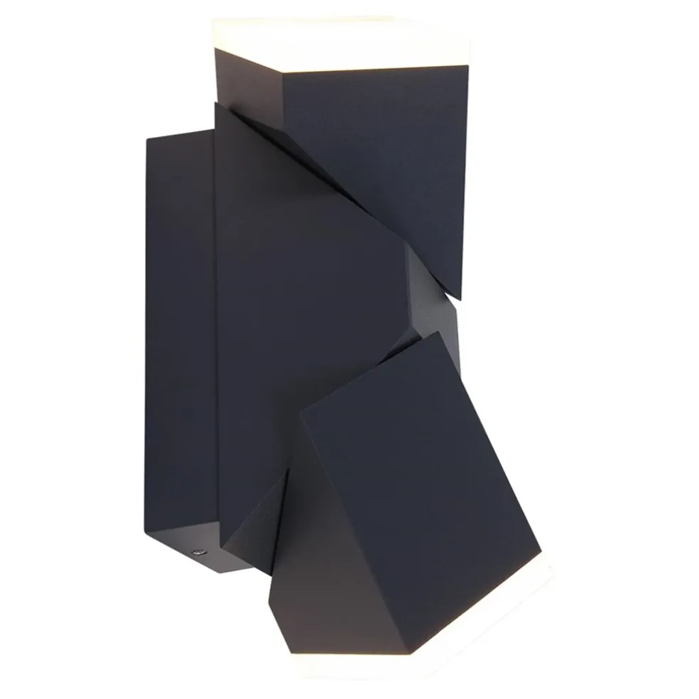 Een bijzonder ontwerp met een bijzonder effect. Deze moderne LED buitenlamp lijkt een gewone rechthoekige te zijn, maar schijn bedriegt. De buitenlamp heeft namelijk 2 verstelbare kappen die ieder 340° kunnen draaien. Zo kunt u er voor kiezen de buitenlamp als een gewone up en downlighter te gebruiken, of de kappen helemaal naar wens te draaien zodat er een persoonlijk lichtspektakel ontstaat. De behuizing is gemaakt van aluminium en afgewerkt met 2 kunststof kappen. Dit maakt de buitenlamp IP54 goedgekeurd. De buiten wandlamp is uitgevoerd in het zwart en geeft een sfeervolle warm witte verlichting.