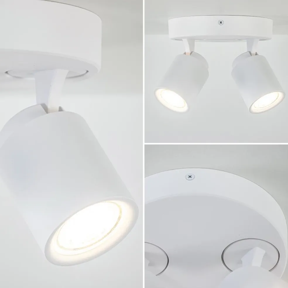 Op zoek naar een elegante plafondlamp? Dan is deze 2-lichts opbouwspot rond echt iets voor u! De witte uitvoering zorgt voor zowel een landelijke als Scandinavische toevoeging aan uw interieur. De ronde opbouwspot is verstelbaar, zo kunnen de kapjes gekanteld en gedraaid worden, zodat u uw eigen draai aan deze spots kan geven. Ideaal voor een hal of slaapkamer. De witte 2-lichts opbouwspot wordt geleverd zonder lichtbron en is dimbaar met een externe dimmer (exclusief). De lichtbron kan worden geplaatst door de volledige kap van de spot los te draaien.