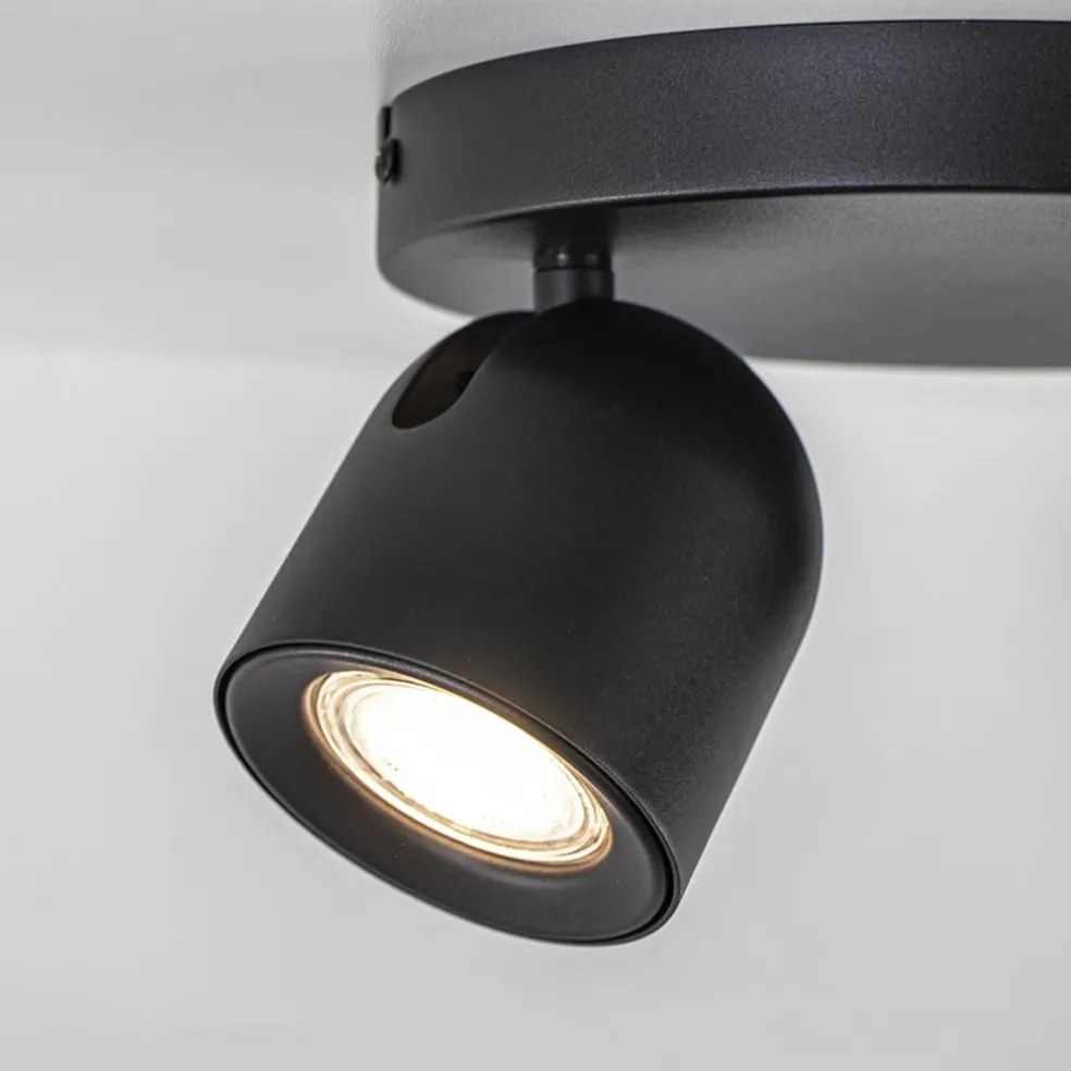 Ideaal voor het uitlichten van een donkere hoek, kunstobject of gewoon als extra sfeer in de ruimte. Deze 2-lichts ronde opbouwspot kan het allemaal. De spots zijn bevestigd op een ronde plafondplaat en zijn volledig naar wens te verstellen door deze te draaien en/of te kantelen. De zwarte spots worden geleverd exclusief lichtbron (GU10). De lichtbron wordt gemakkelijk geplaatst door het binnenkapje te verwijderen en weer terug te plaatsen. Leuk aan deze plafondspot is dat er ook een gouden kapje mee wordt geleverd zodat u zelf kunt kiezen welke u wilt toepassen.