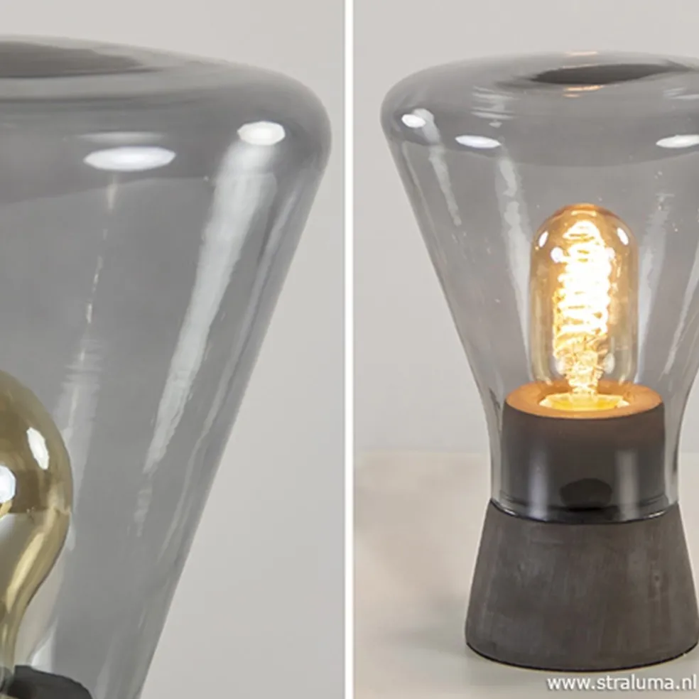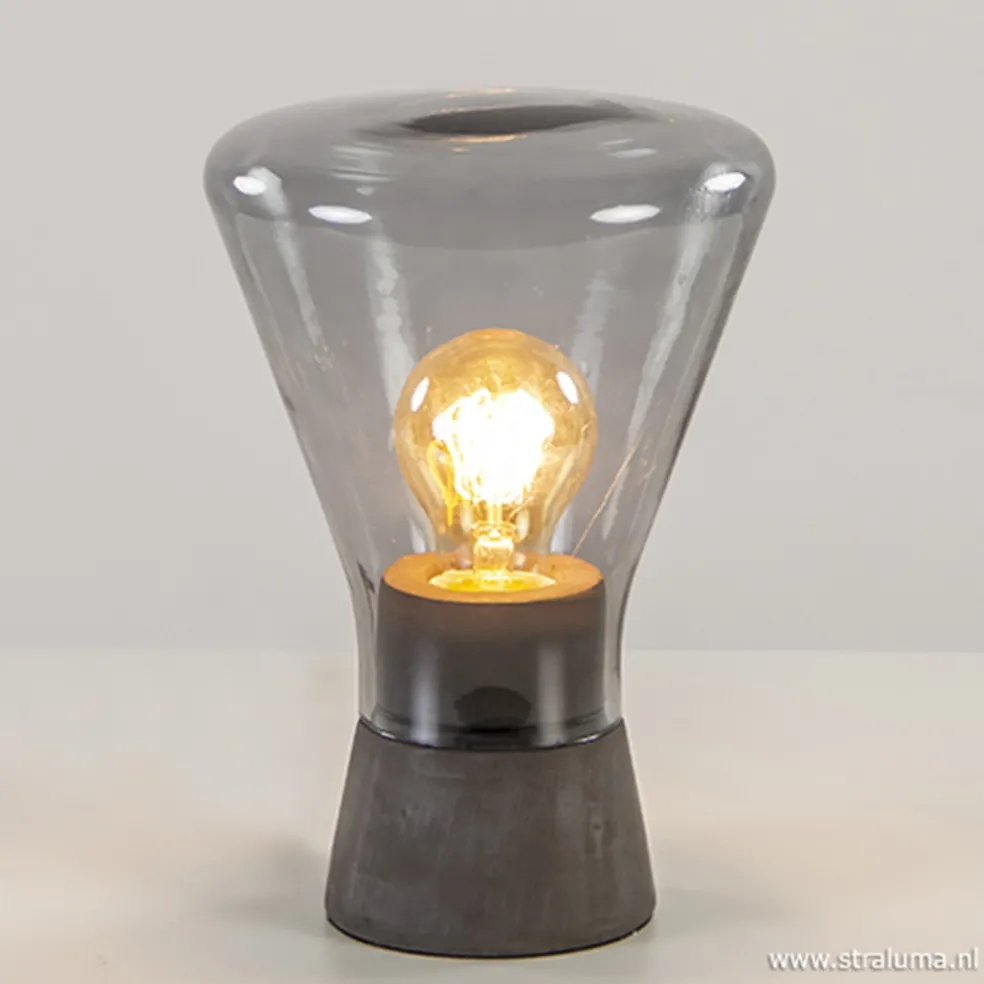 Smoke glazen tafellamp met betonnen voet