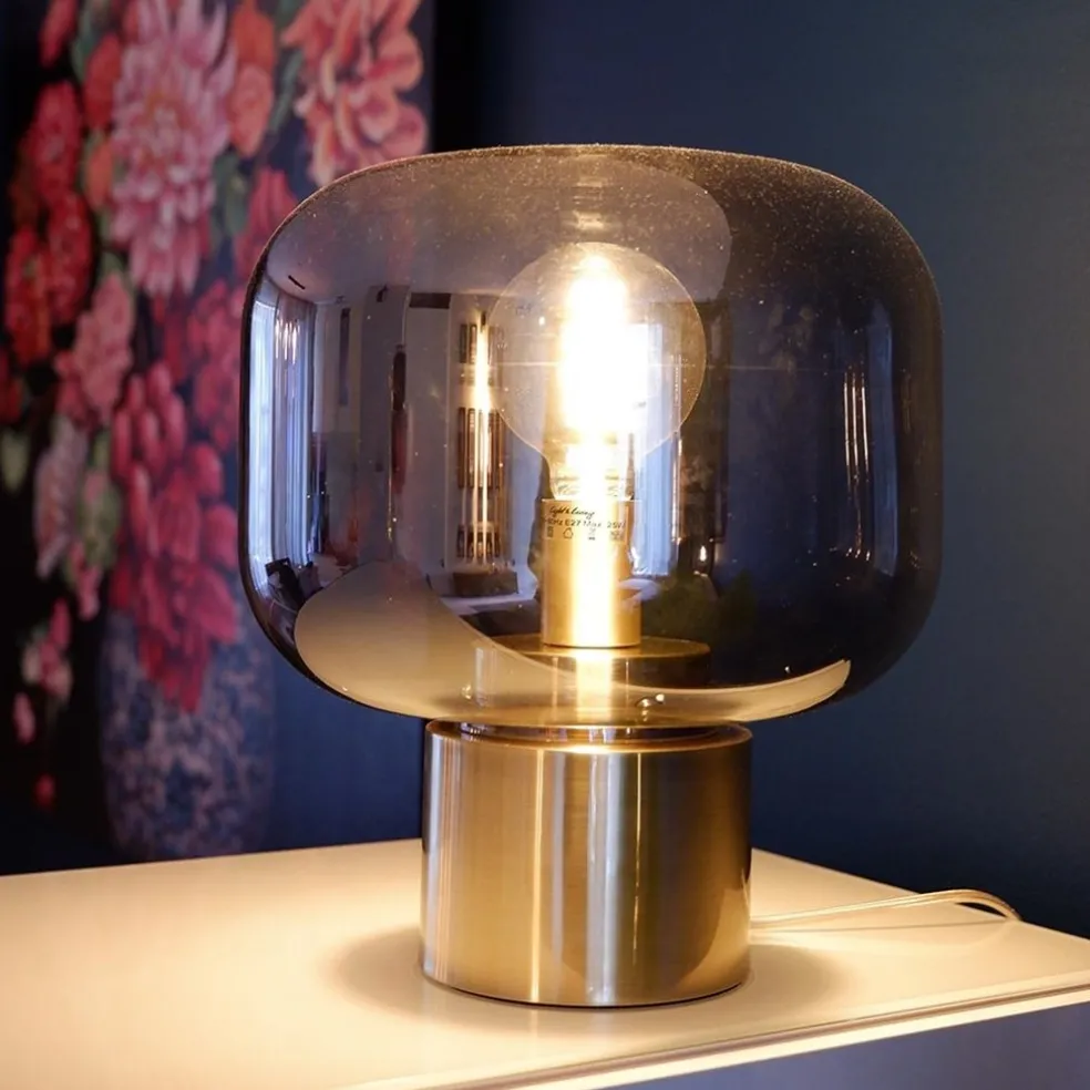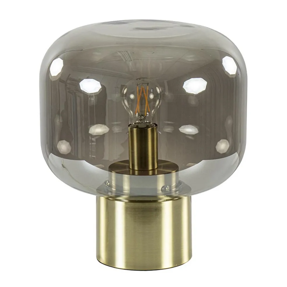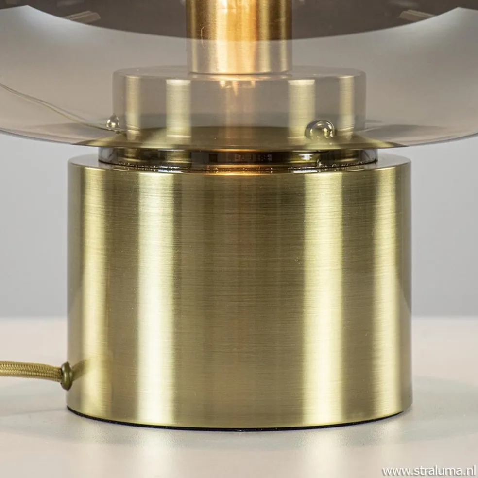 Smoke glas is helemaal van nu. Het donkere glas zorgt voor een luxe uitstraling en een gezellige sfeer tegelijk. De Arturan van Light & Living is voorzien van een dichte smoke glazen kap die wordt ondersteund door een bronzen voet. De moderne tafellamp is heeft een goud snoer met schakelaar en wordt exclusief lichtbron geleverd. De tafellamp Arturan staat mooi op een dressoir of bijzettafel in een modern, strak of strak klassiek interieur.