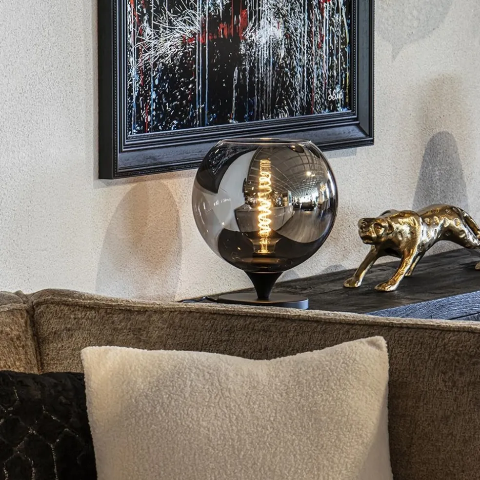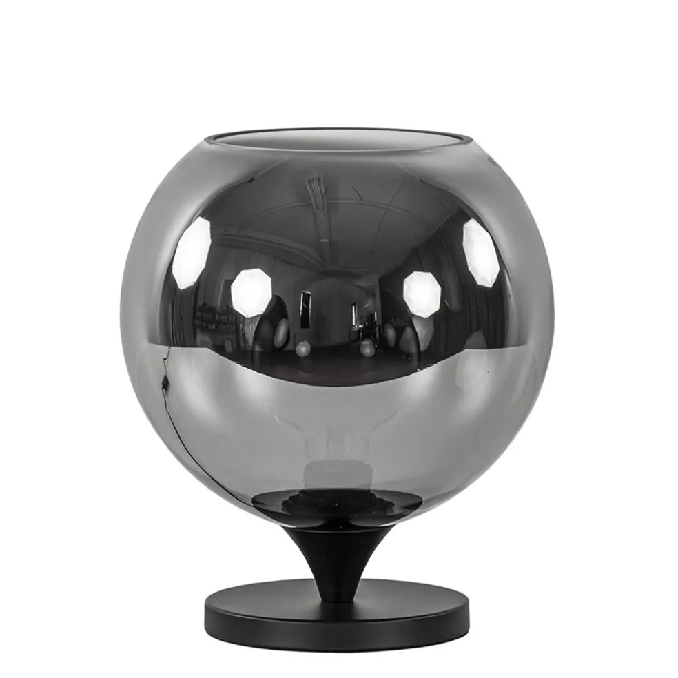 Tafellamp mat zwart met smoke glas 25 cm