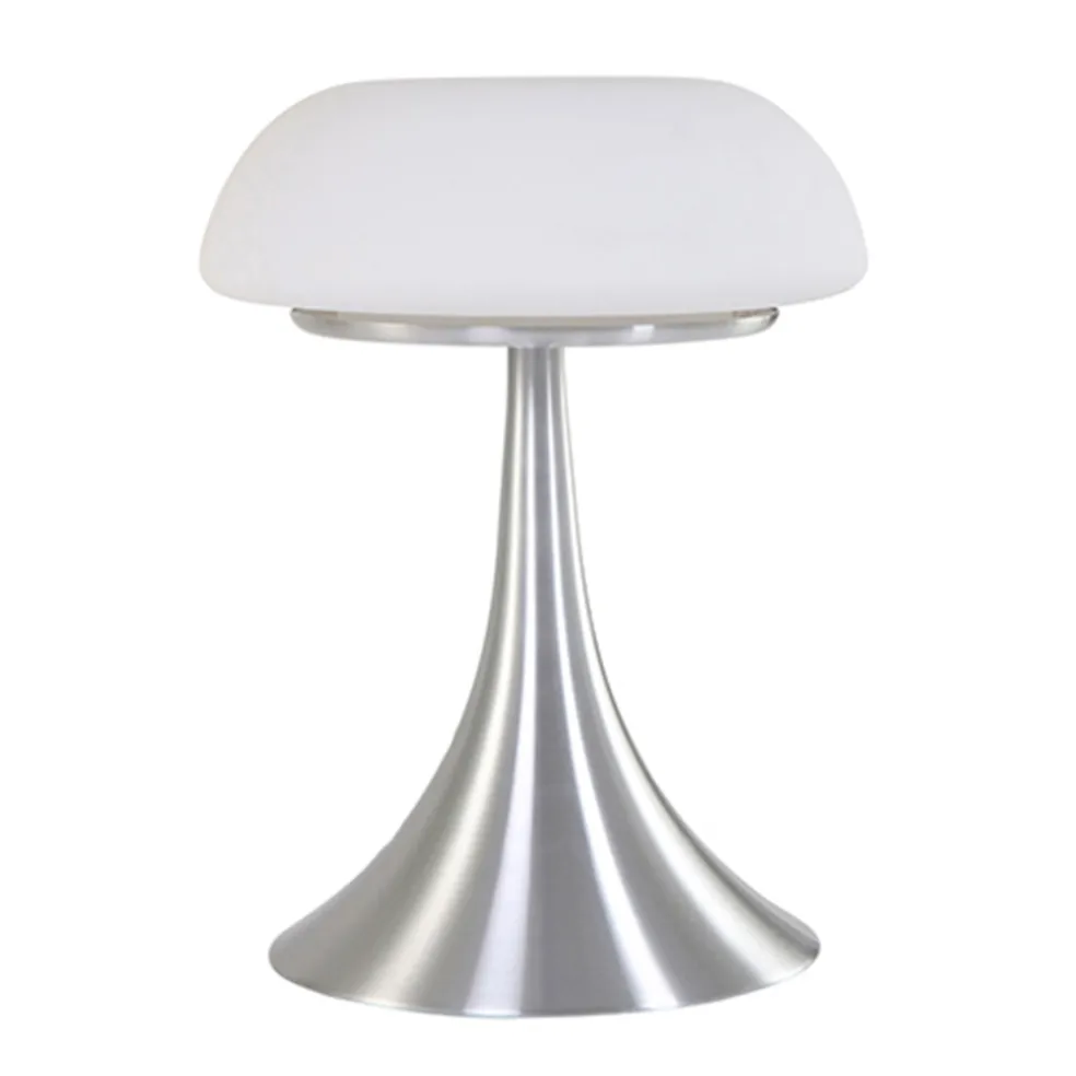 Tafellamp Purissima heeft een moderne design-achtige look die mooi past in een moderne of romantische woonstijl. De moderne lamp heeft een stalen armatuur dat is gecombineerd met opaal glas. Het opale glas zorgt voor een fijne sfeervolle verlichting die gemakkelijk kan worden bediend dmv het transparante snoer met schakelaar. De stalen tafellamp past mooi op een dressoir of kast en wordt exclusief lichtbron(E14) geleverd.