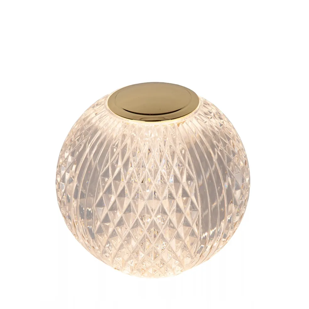 Wat een leuk lampje is dit. Prachtig van design en sfeervol in gebruik. De kleine bol is uitgevoerd in een diamant en is voorzien van LED. Wat de tafellamp extra leuk maakt is dat deze werkt op een batterij. De diamant tafellamp is dus draadloos te gebruiken en kan worden opgeladen. Wanneer de lamp volledig is opgeladen kan deze op maximaal vermogen tot wel 3 uur branden. Verder is de diamanten bol voorzien van een gouden touchdimmer aan de bovenzijde waarmee u de lamp in 3 standen kunt dimmen. Een ideale tafellamp om overal neer te zetten en extra sfeer toe te voegen aan het interieur.