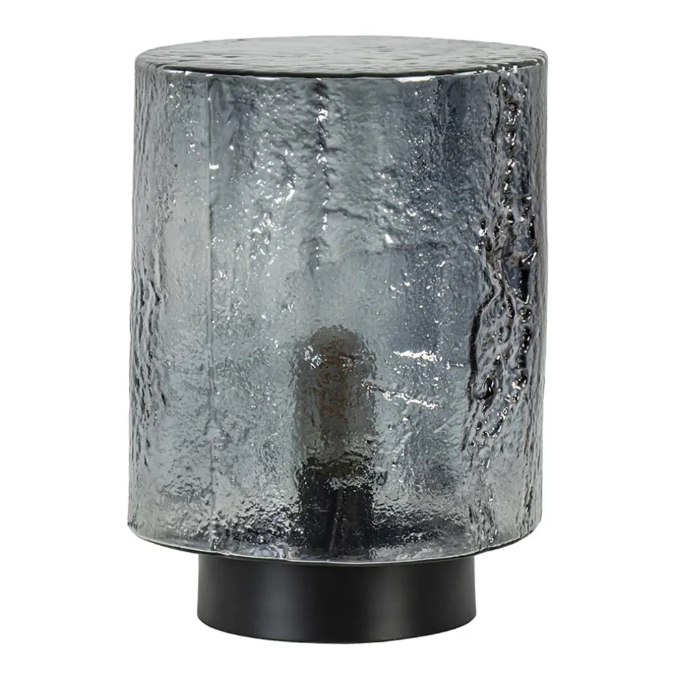 Deze trendy tafellamp is een sfeervolle toevoeging aan het interieur. De tafellamp is voorzien van een grove glazen kap met reliëf die mat is uitgevoerd. Deze is met de hand gemaakt waardoor iedere kap uniek is. De smoke glazen kap wordt ondersteund door een zwart metalen voet met een snoer van 175 cm. De glazen tafellamp past mooi op een dressoir, kast of het nachtkastje.