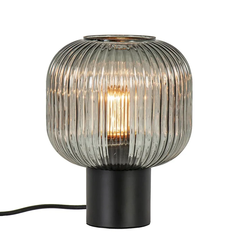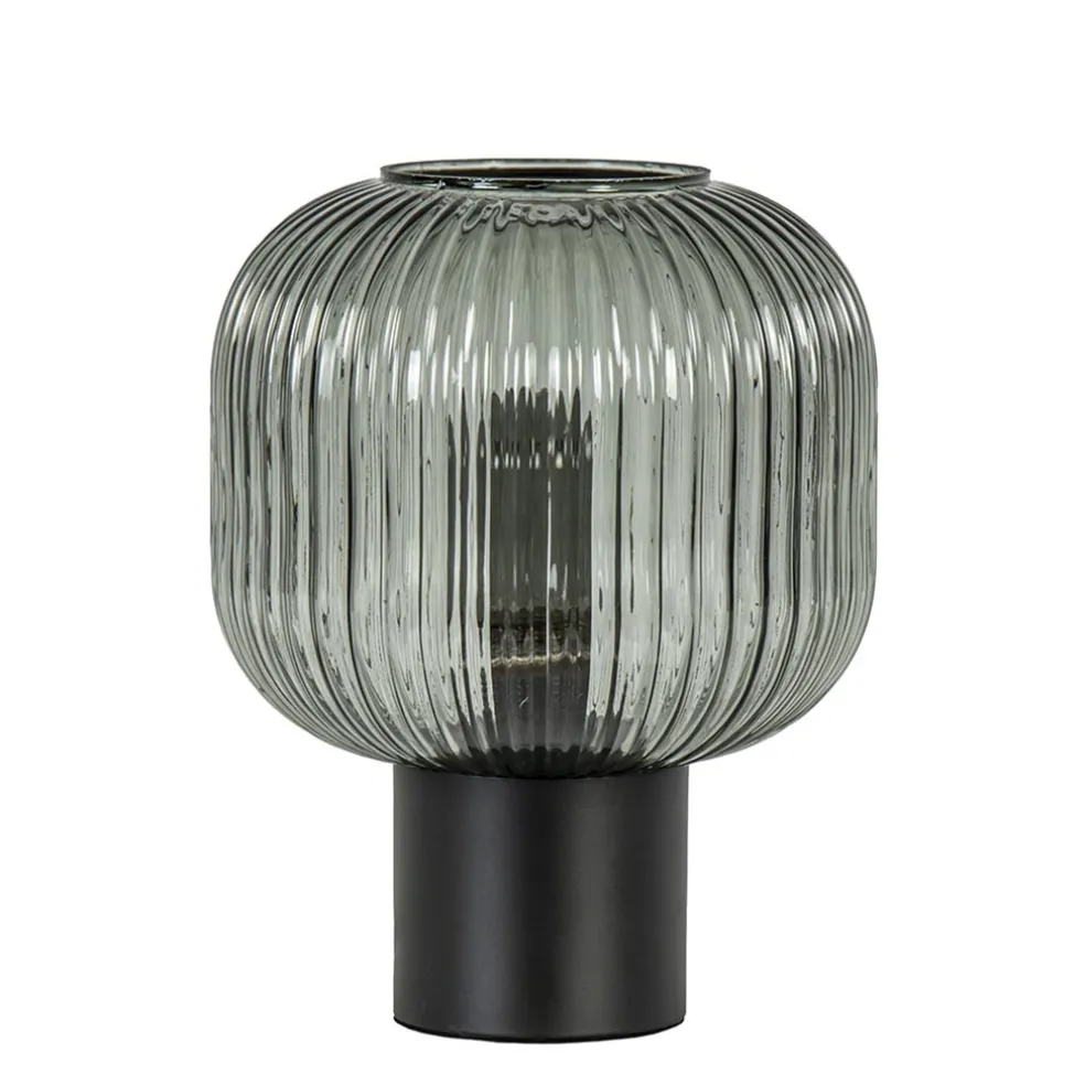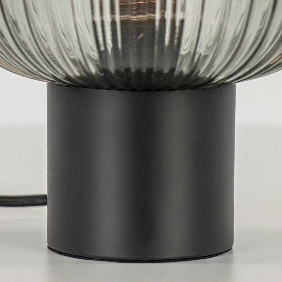 Tafellamp zwart met ronde smoke glazen kap