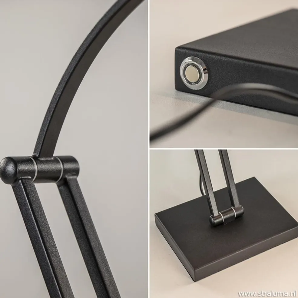 Een ideale bureaulamp voor in uw thuiskantoor. Deze metalen tafellamp is voorzien van LED verlichting wat de lamp energiezuinig maakt. Handig aan de lamp, is dat deze op drie plekken is te verstellen. Zo versteld u gemakkelijk en snel de lamp is de gewenste stand. De zwarte bureaulamp heeft een brede LED strip die dmv de touchdimmer op de achterzijde van de voet naar wens is te dimmen. Ideaal wanneer u gezellig wilt lezen of aan het werk bent. Het LED geeft met 2700 Kelvin een sfeervolle warm witte verlichting. Deze moderne bureaulamp is een ideale werk- en leeslamp.