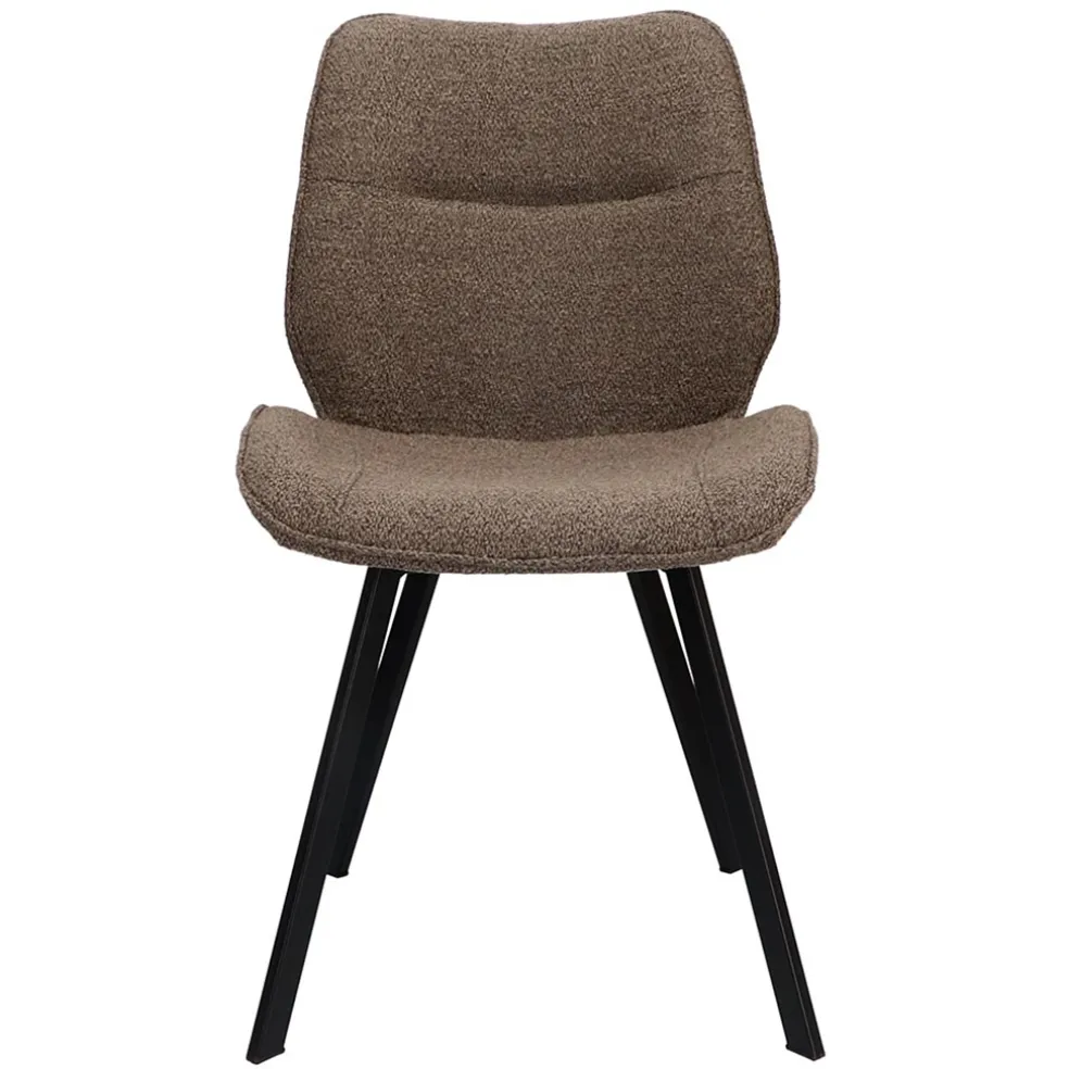 Deze trendy eetkamerstoel is een leuke en comfortabele toevoeging aan de eetkamer. De stoel heeft een stoffen zitting en rugleuning die zijn uitgevoerd in het gemêleerd bruin. De kuip wordt ondersteund door smalle zwart metalen poten. De stoel is mooi te combineren met diverse stijlen eettafels en leuk om te variëren in diverse kleuren.