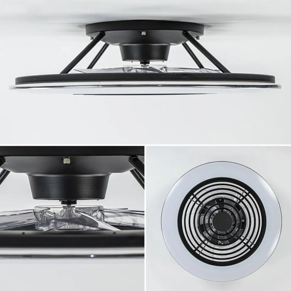 Een moderne variant van de klassieke plafondventilator. Deze zwart met chromen ventilator en plafondlamp inéén doorbreekt de standaard modellen met de losse bladen. Deze strakke ventilator bestaat uit twee delen, de buitenste ring is voorzien van geïntegreerd LED en de binnenste ring behuisd de ventilator. Het mooie is ook nog dat de ventilator en de lamp zijn te bedienen via de meegeleverde afstandsbediening, maar ook gemakkelijk met uw mobiel. Middels een app en bluetooth stelt u snel de gewenste snelheid van de ventilator in of dimt u de verlichting. Deze is in te stellen qua kleur en intensiteit, ideaal voor in de woonkamer of slaapkamer. Een ventilator is nog nooit zo strak en gemakkelijk bedienbaar geweest.