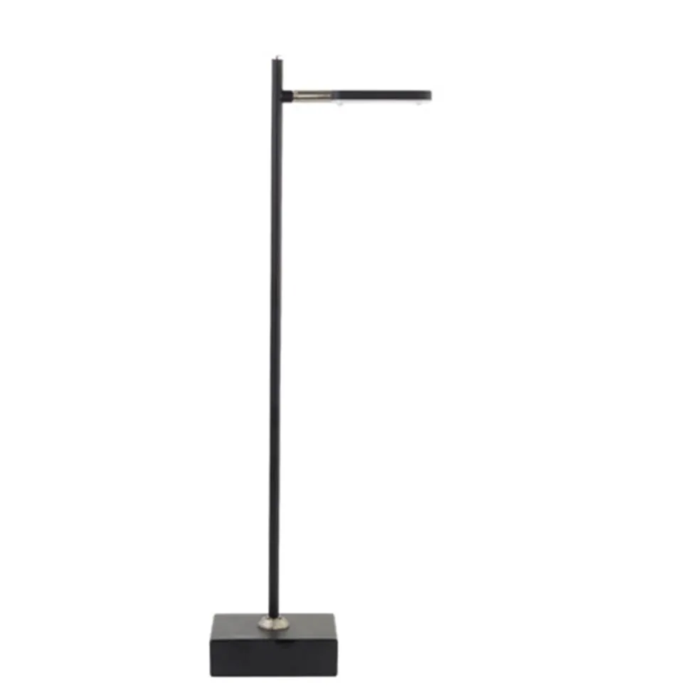 Moderne matzwarte bureau- tafellamp voorzien van rvs accenten. Door het eenvoudige design is deze tafellamp voor vele doeleinden toepasbaar. Bijvoorbeeld op een dressoir, of voor directe verlichting op een bureau of andere werkplek. De verticale stang is bevestigd d.m.v. een kogelgewrichtje op de vierkante voet. En mede door de geheel draai- en kantelbare lichtunit kunt u de leeslamp in elke gewenste stand zetten. De verticale stang is voorzien van een traploze dimfunctie. Hiermee kunt u de lichtsterkte van de led lichtbron naar behoefte bepalen. De dimmer is voorzien van een geheugen unit waardoor deze de lichtsterkte onthoudt als u de tafellamp weer aan zet.