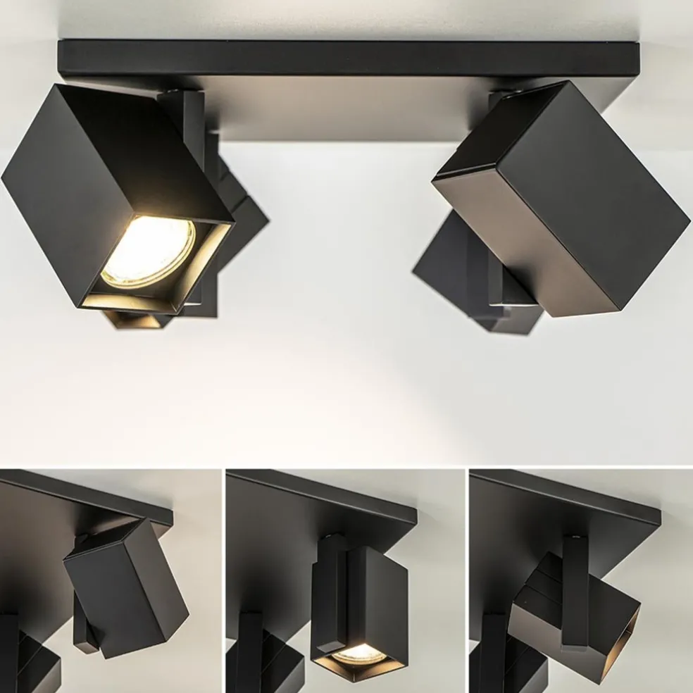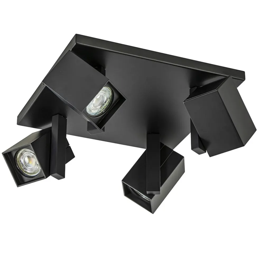 Strak van design en functioneel in gebruik. Deze vierkante opbouwspot is een unieke in zijn soort. Veelal zijn de spots rond maar deze is uitgevoerd in het vierkant/rechthoekig. De spots hebben een afmeting van 5,5×5,5 cm en is 8,5 cm hoog. De spots zijn bevestigd op een smal pootje. De rechthoekige spots kunnen kantelen en het pootje kan draaien. Zo kunt u de 4-lichts plafondlamp helemaal naar wens stellen. Ideaal voor in een woonkamer, keuken of slaapkamer. De vierkante plafondplaat maakt de lamp helemaal af. De moderne plafondspot wordt geleverd exclusief lichtbron.
