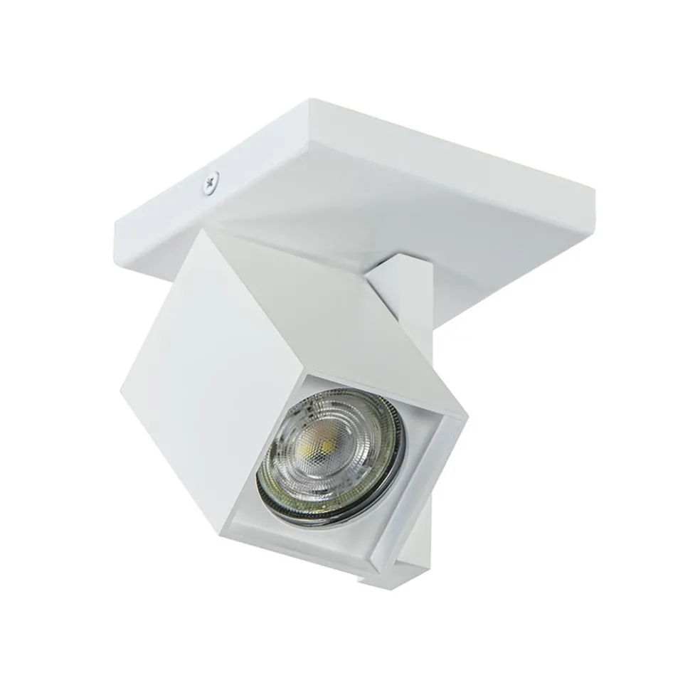 Strak van design en functioneel in gebruik. Deze vierkante opbouwspot is een unieke in zijn soort. Veelal zijn de spots rond maar deze is uitgevoerd in het vierkant/rechthoekig. De spot heeft een afmeting van 5,5×5,5 cm en is 8,5 cm hoog. De spot is bevestigd op een smal pootje. De rechthoekige spot kan kantelen en het pootje kan draaien. Zo kunt u de 1-lichts plafondlamp helemaal naar wens stellen. De vierkante plafondplaat maakt de lamp helemaal af en past perfect over de meeste stroompunten heen. De moderne plafondspot wordt geleverd exclusief lichtbron (GU10).