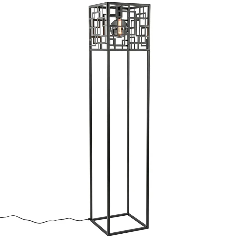 Vierkante vloerlamp mat zwart metaal