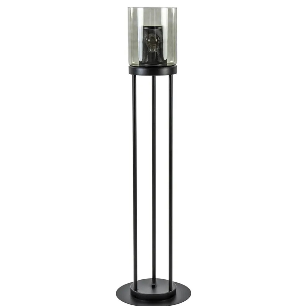 Vloerlamp cilinder mat zwart met smoke glazen kap