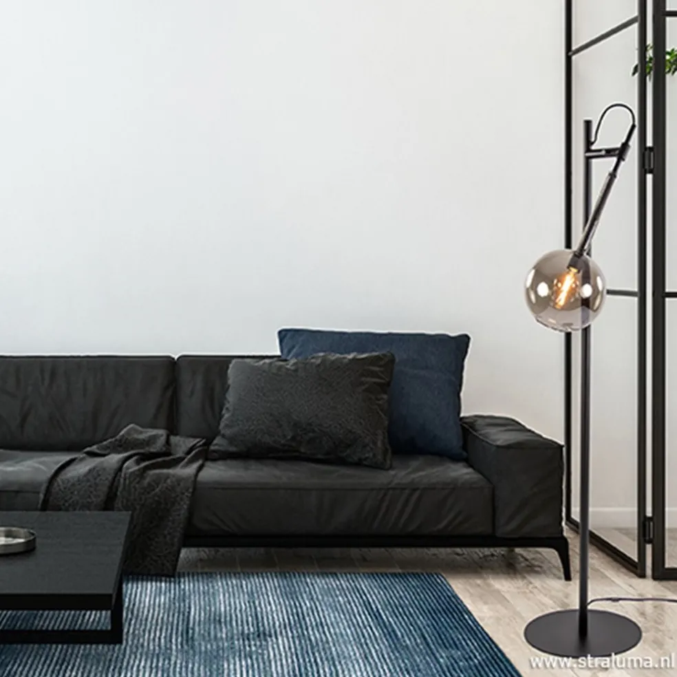 Vloerlamp Globe 1L zwart/smoke glas 25cm