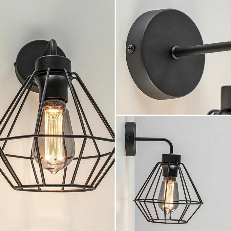 Deze wandlamp maakt een Scandinavisch interieur helemaal af. De wandlamp is gemaakt van metaal en afgewerkt met een mat zwarte finish. De draadkorf heeft de vorm van een diamant en wordt gemakkelijk op de fitting bevestigd. De ronde bevestiging is niet voorzien van een snoer en dient dan ook direct op een stroompunt te worden aangesloten. De wandlamp diamant past mooi in een Scandinavisch, landelijk of industrieel interieur.