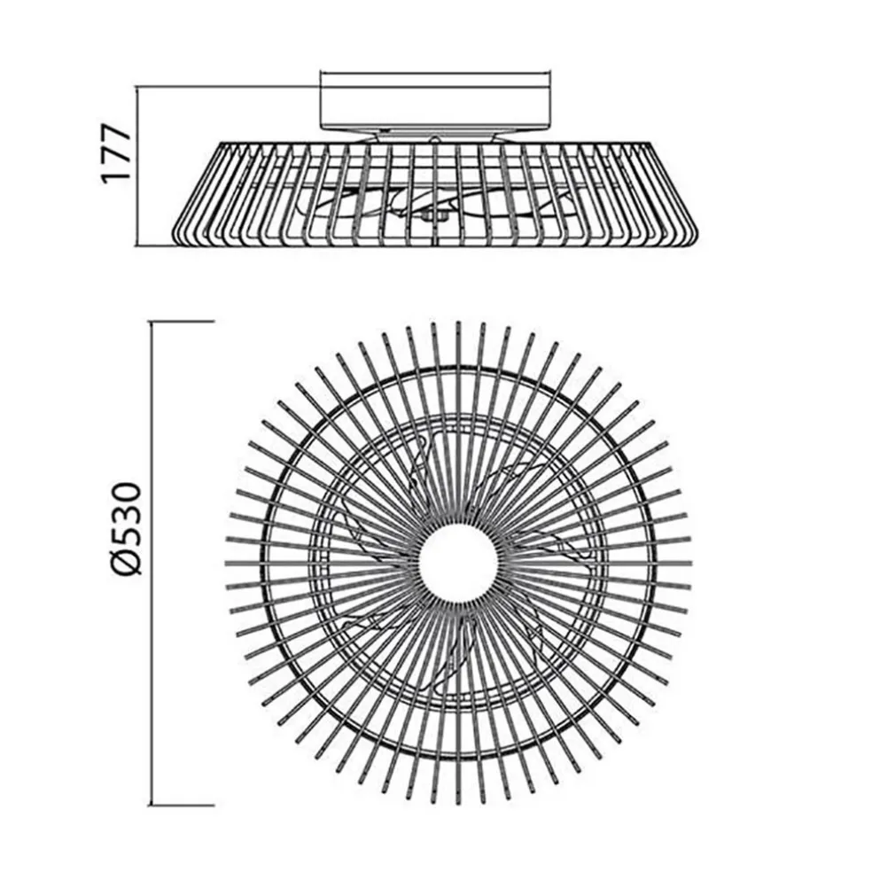 Een moderne design plafondventilator met LED zoals we deze nog niet eerder hebben gezien. De ronde ventilator oogt meer als een plafondlamp dan een ventilator maar heeft wel beide functies in één. De architectonische kap geeft de plafondventilator een design look die door de grootte van 53 cm doorsnede een mooie eye-catcher is. De moderne plafondventilator met lamp is voorzien van een geïntegreerd LED met een aantal functies. Zo kunt u de kleurtemperatuur kiezen tussen de 2700 en 5000 Kelvin en kunt u gemakkelijk de lamp dimmen. Dit bediend u allemaal gemakkelijk en snel met de meegeleverde afstandsbediening. Een ideale plafondlamp en ventilator in één die ook nog eens een strakke design uitstraling heeft.