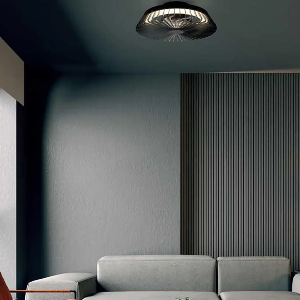 Zwarte plafondventilator mini met dimbaar LED